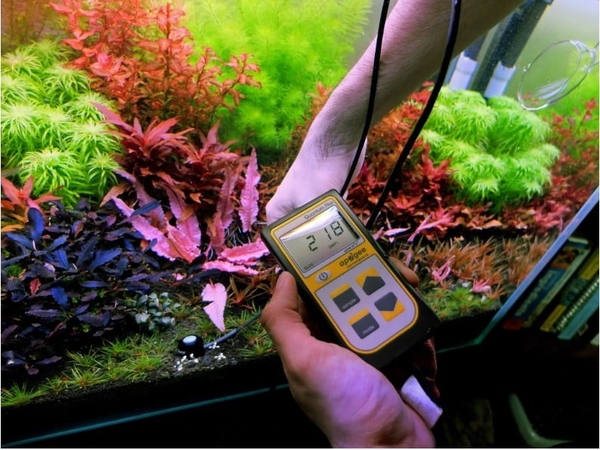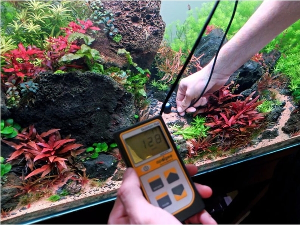 Sử dụng máy đo cho thấy bể thủy sinh này có 128 umols PAR. Các khu vực được tô bóng sẽ đo các giá trị thấp hơn. Các nhà sản xuất đèn thủy sinh thường sản xuất các bản nâng cấp để cho thấy lượng ánh sáng được tạo ra bởi một đơn vị ánh sáng ở độ sâu nước nhất định.
