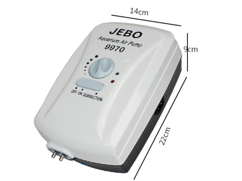 MÁY SỦI OXY 2 VÒI TÍCH ĐIỆN JEBO 9970 cho hồ cá còn có nhiều tên gọi khác như máy oxy, máy sục khí oxy, máy tạo oxy, máy thổi khí oxy, máy bơm khí oxy cho hồ cá. Đây là loại máy bơm thổi khí thường được sử dụng trong bể cá cảnh nói chung hoặc bể thủy sinh nói riêng, với bể cá loại nhỏ (bình, chậu) có thể không cần sử dụng.