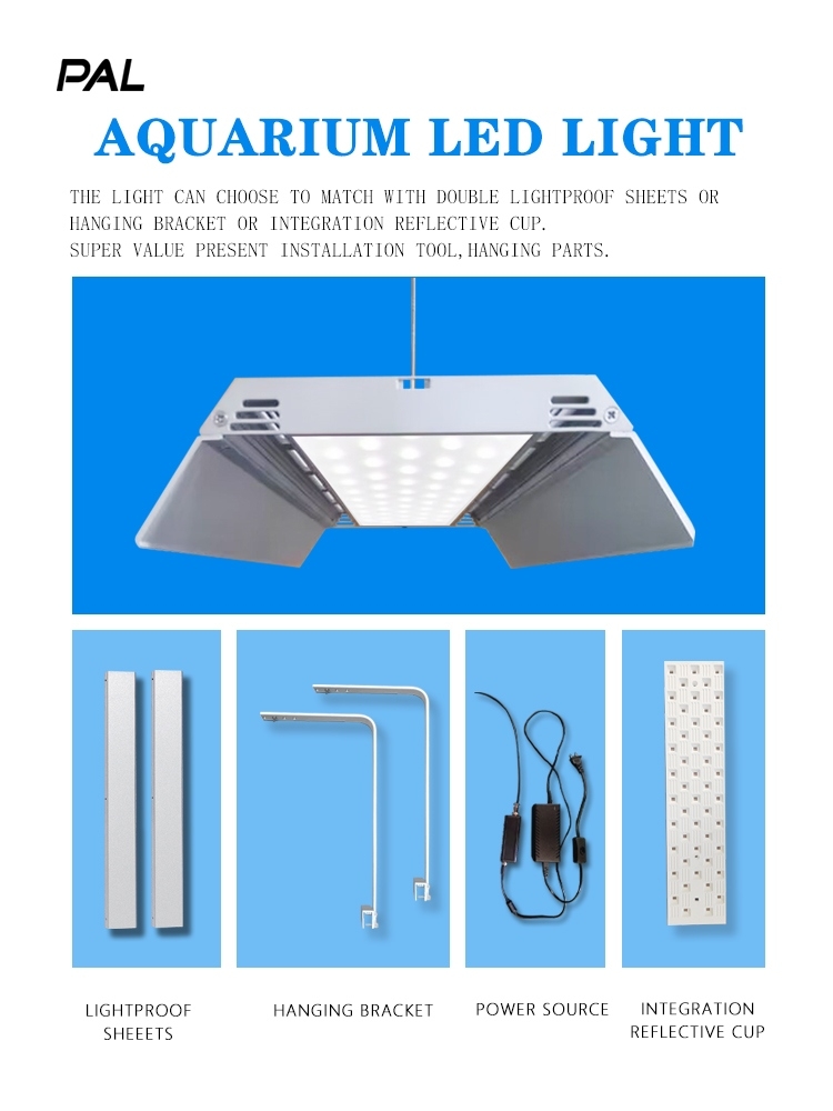 - Thiết kế đèn dạng treo, thân thiện, đẹp mắt và gọn gàng cho bể thủy sinh, cá cảnh.