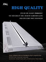 - Đèn được làm từ khung nhôm nguyên khối, cứng cáp và tản nhiệt cho đèn cực tốt (không cần dùng quạt).