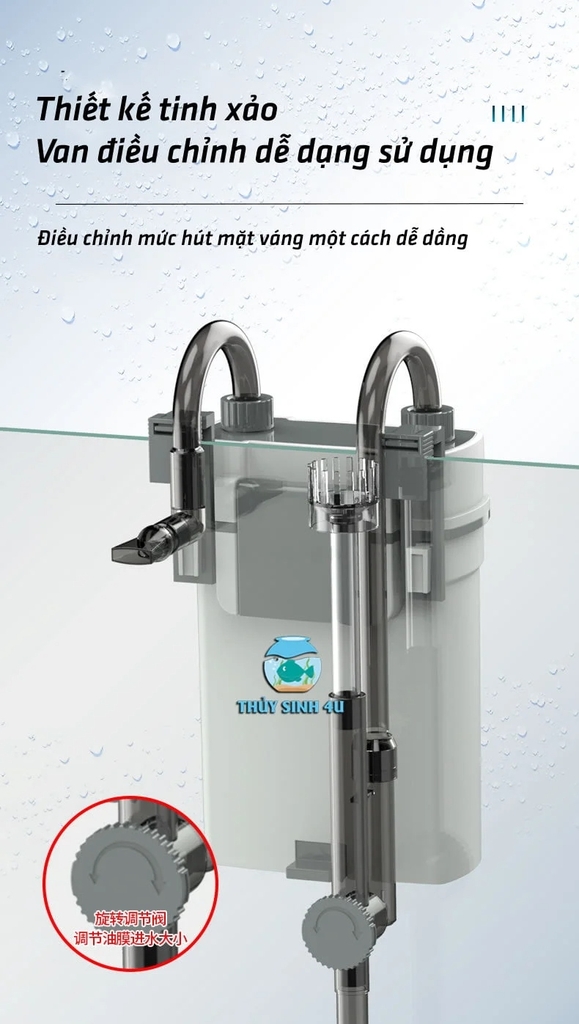 - Tích hợp sẵn bộ lọc váng có thể điều chỉnh.